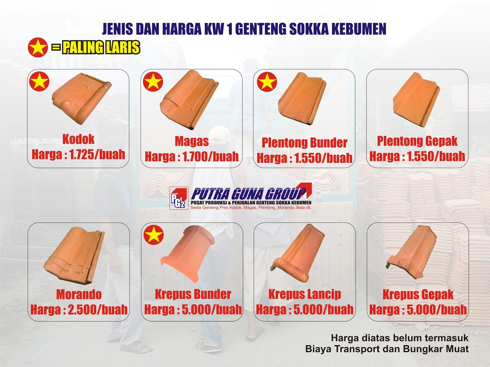 Harga genteng sokka asli kebumen murah.