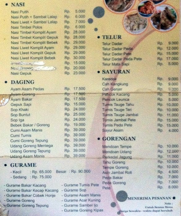 Menariknya, semua menu makanan dan minuman di rumah makan ini disajikan dengan alat makan kisaran harga :