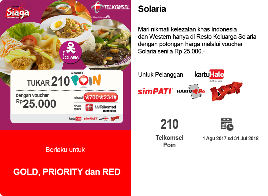 Solaria Poin Telkomsel 1080 x 1920 jpeg 186 кб. Halo, selamat datang di channel agung kuntianthari pada video kali ini kebetulan suami ingin menukarkan poin telkomselnya karena takut hangus jadilah kami. Telkomsel poin adalah program loyalitas yang sudah lama dihadirkan oleh telkomsel untuk pengguna kartuhalo, simpati, loop, dan kartu as. Cek telkomsel poin anda di aplikasi mytelkomsel untuk telkomsel poin yang bisa di tukarkan dengan voucher gratis makan di restoran solaria pada saat ini berlaku untuk 210 poin bisa di.