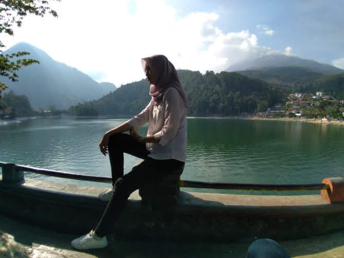 Danau tersebut bernama telaga sarangan, yang berada di kabupaten magetan, jawa timur.